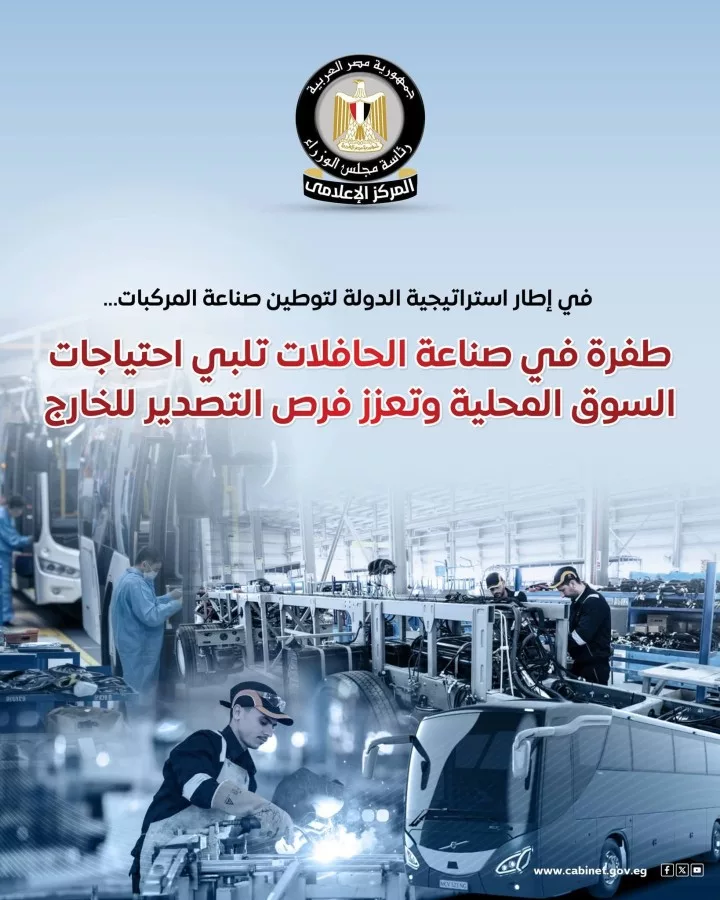 - المركز الإعلامي لمجلس الوزراء: طفرة في صناعة الحافلات تلبي احتياجات السوق المحلية وتعزز فرص التصدير للخارج