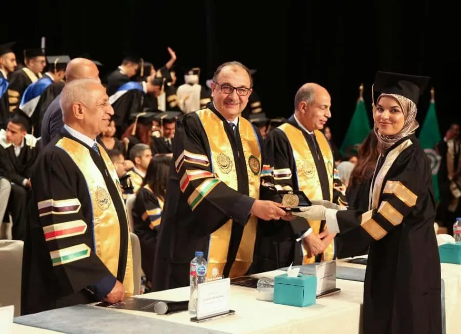 وفي كلمته خلال الحفل، أعرب الوزير عن فخره واعتزازه بمشاركة الخريجين هذا اليوم المميز، مشيدًا بدور الأكاديمية كصرح عربي علمي رائد، أثبت كفاءته في تخريج كوادر مؤهلة علميًا ومهنيًا، قادرة على الإسهام الفعّال في بناء أوطانها.