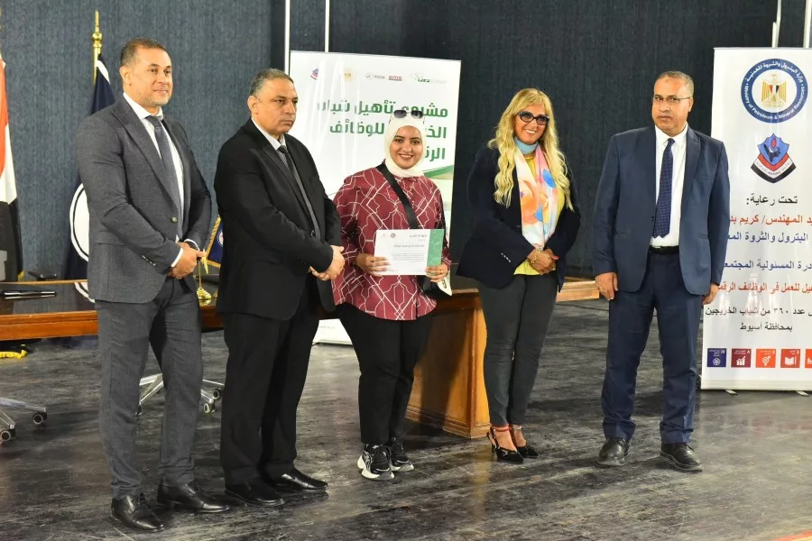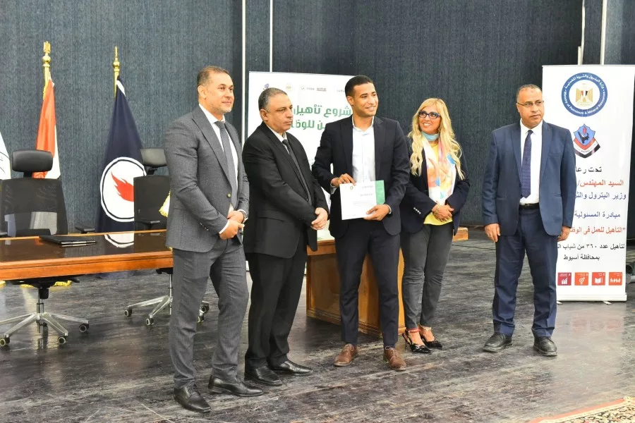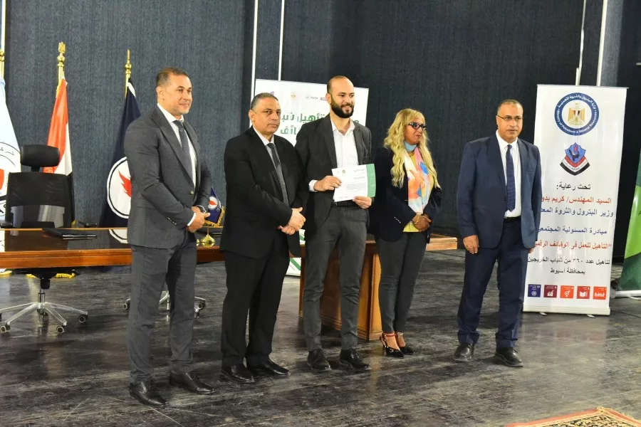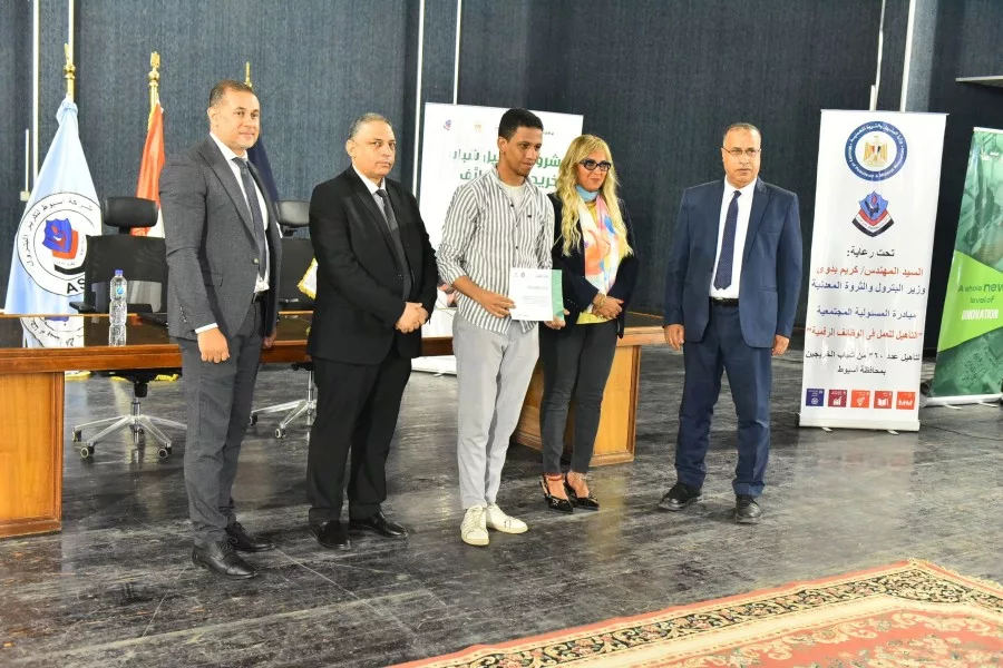 إحتفلت شركة أسيوط لتكرير البترول بتسليم شهادات التخرج لخريجى الدفعة الاولى من برنامج تأهيل عدد ٣٦٠ شاب وفتاة من شباب الخريجين بمحافظة أسيوط للإلتحاق بسوق العمل من خلال تدريبهم على الوظائف الرقمية الحرة فى ١٢ مسار متنوع فى مجال التكنولوجيا الرقمية من أجل تحقيق أهداف المبادرة و التى يمكن تلخيصها فى: التأهيل للعمل فى مجال الوظائف الرقمية الحرة و المساهمة فى تعزيز مكانة مصر الرقمية على خريطة الدول المصدرة للخدمات الرقمية و المساهمة في وضع نظام وطني متكامل للإمداد بالكوادر البشرية المدربة على أحدث تكنولوجيا المعلومات ؛ فضلا عن المساهمة في خفض نسبة البطالة. حيث استعرض اوائل الخريجين مشروعات التخرج والتى قاموا بتنفيذها وتم تسليمهم شهات تقدير.