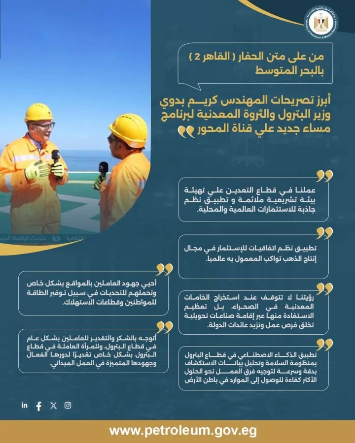 أبرز تصريحات المهندس كريم بدوي وزير البترول والثروة المعدنية لبرنامج مساء جديد علي قناة المحور :