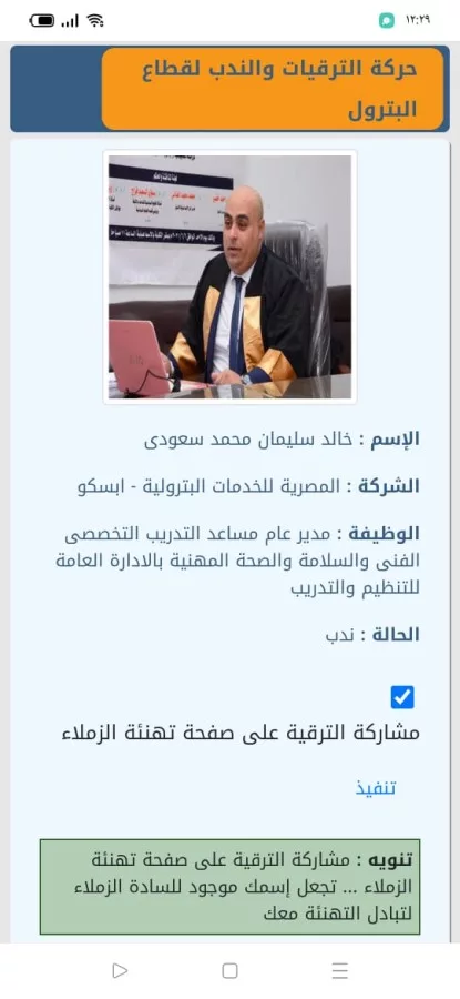 أصدر المهندس كريم بدوى، وزير البترول والثروة المعدنية، قرارًا بترقية خالد سليمان محمد سعودى إلى وظيفة مدير عام مساعد التدريب التخصصي بالشركة المصرية للخدمات البترولية ” إبسكو”.
