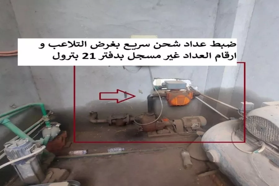 و خلال التفتيش الميداني علي نحو 20 محطة بمحافظات البحيرة والبحر الأحمر و القاهرة و أسيوط تم ضبط عدد من المخالفات أبرزها طلمبة تموين قاطرات ومراكب بإحدى المحطات تستخدم للتعبئة السريعة للصهاريج بغرض السرقة والتلاعب .