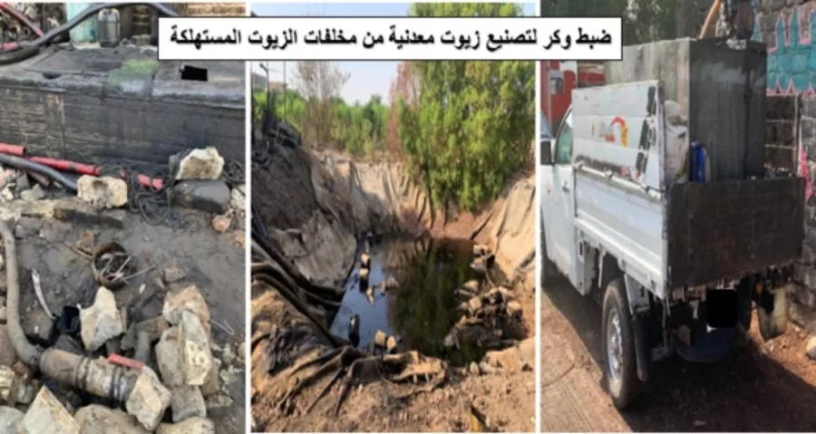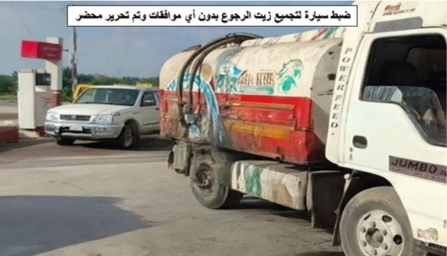 كما تم ضبط سيارة بمحافظة الشرقية محملة بكمية 3 طن زيوت مسترجعة بدون آية موافقات من الهيئة المصرية العامة للبترول وتم التحفظ عليها وتحرير محضر .