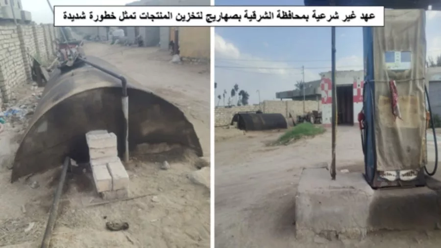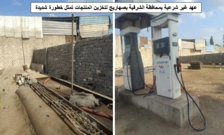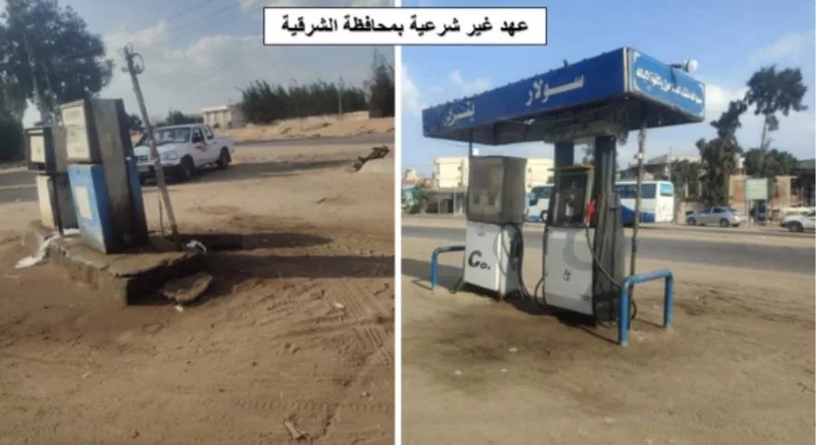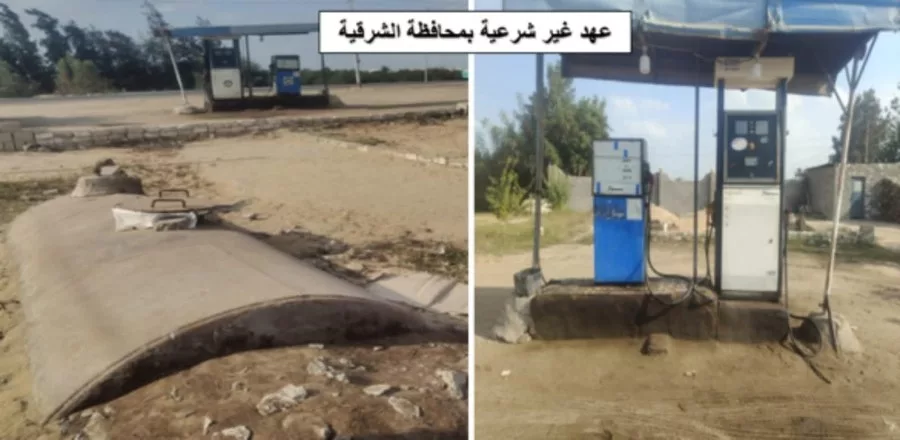 فيما تم ضبط بؤرة بمنطقة الحسينية بمحافظة الشرقية بها (7) نقاط توزيع غير شرعية أو مرخصة قانوناً و طلمبات تموين وخزانات وقود بدون آية تراخيص أو موافقات ، وجار اتخاذ الإجراءات القانونية .