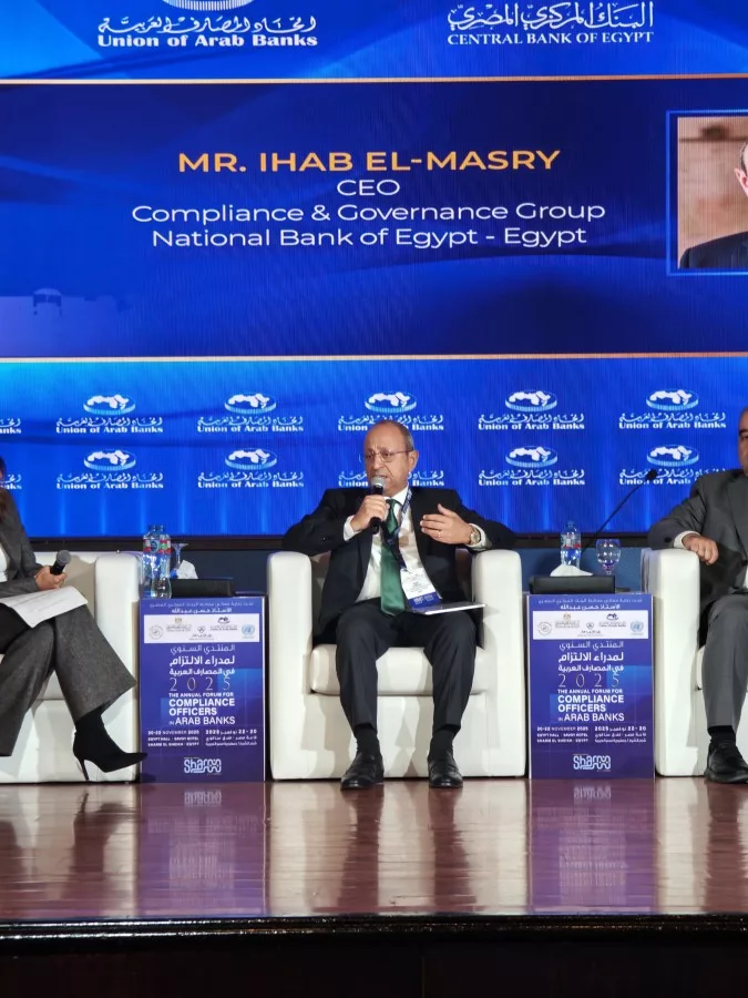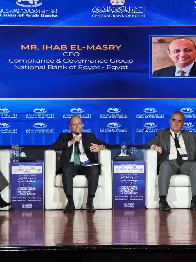 تعرف على تصريحات إيهاب المصري رئيس الالتزام المصرفي والحوكمة المؤسسية التنفيذي بالبنك الأهلي المصري في المنتدى السنوي لمدراء الالتزام في المصارف العربية ٢٠٢٥