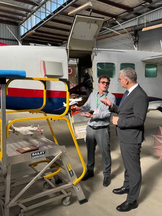 وخلال الجولة بموقع عمل الشركة، تفقد الوزير منطقة هنجر الطائرات المجهزة لتنفيذ المسح الجوي، كما تفقد المجسات المستخدمة وأنظمة بيانات الطيران وإجراءات سلامة العمليات.