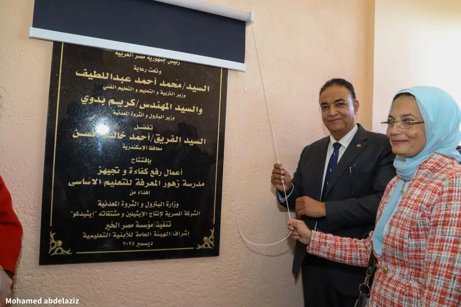 إفتتاح مدرسة زهور المعرفة للتعليم الأساسى بالعامرية بعد تطويرها بدعم من شركة ” إيثيدكو “