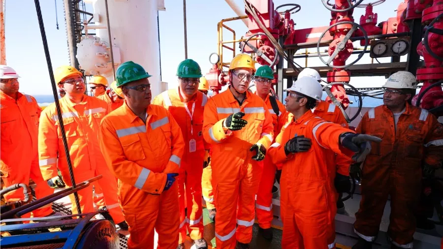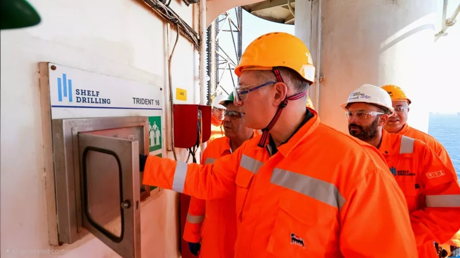 وخلال الجولة، تابع الوزير سير العمل في حفر البئر من على متن الحفار البحري Trident 16 التابع لشركة Shelf Drilling، والذي يعمل حالياً في خليج السويس، حيث يستهدف بئر بلاعيم البحري 133 الوصول إلى عمق يتجاوز 2600 متر.