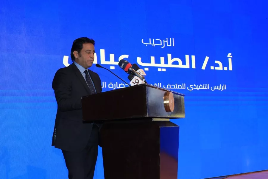 كما ألقى الدكتور الطيب عباس الرئيس التنفيذي لهيئة المتحف القومي للحضارة المصرية، كلمة ترحيبية، أعرب خلالها عن سعادته باستضافة المتحف لهذا المؤتمر الأثري الهام الذي يهدف لخلق حوار حقيقي بين المؤسسات العلمية المصرية وبين القيادات والأثريين بالمجلس الأعلى للآثار للحفاظ على التراث والتاريخ من أجل الأجيال القادمة.