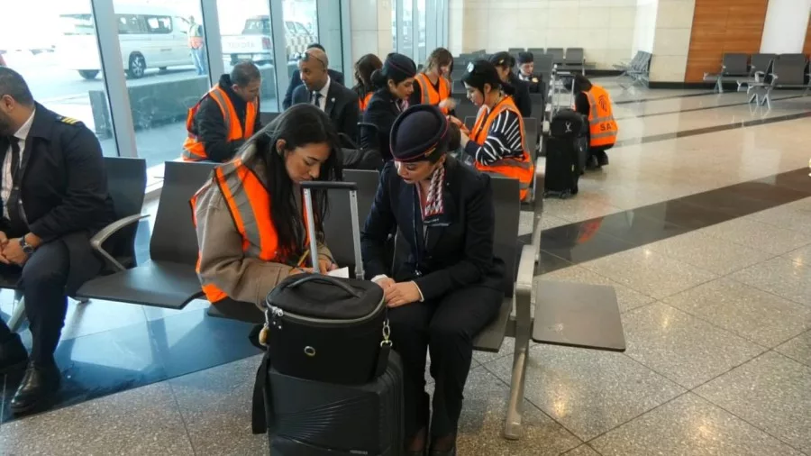 ومن جانبه، صرّح الطيار أحمد عادل، رئيس مجلس إدارة الشركة القابضة لمصر للطيران، أن مشاركة مصر للطيران في تنفيذ هذه التجربة الشاملة تأتي في إطار التزام الشركة بتطبيق أفضل الممارسات الدولية في مجالات السلامة والأمن وإدارة الأزمات، مؤكدًا أن التجربة عكست مستوىً عاليً من الاحترافية والتنسيق بين مختلف قطاعات الشركة والجهات المعنية بالمطار، وأضاف أن غرفة الأزمات بمركز العمليات الجوية قامت بإدارة سيناريو المحاكاة بمشاركة ممثلين عن كافة القطاعات بالشركة، بما أسهم في اختبار جاهزية خطط الطوارئ المعتمدة، وقياس مدى الاتساق والتكامل بينها وبين باقي الجهات العاملة بقطاع الطيران، فضلًا عن تقييم فاعلية منظومة الاتصال وتدفق المعلومات أثناء إدارة الحدث والتعامل الفوري مع تطورات الموقف، كما أوضح أن الملاحظات التي تم رصدها خلال التجربة سيتم الاستفادة منها في تطوير وتحديث خطط الطوارئ بصورة مستمرة .