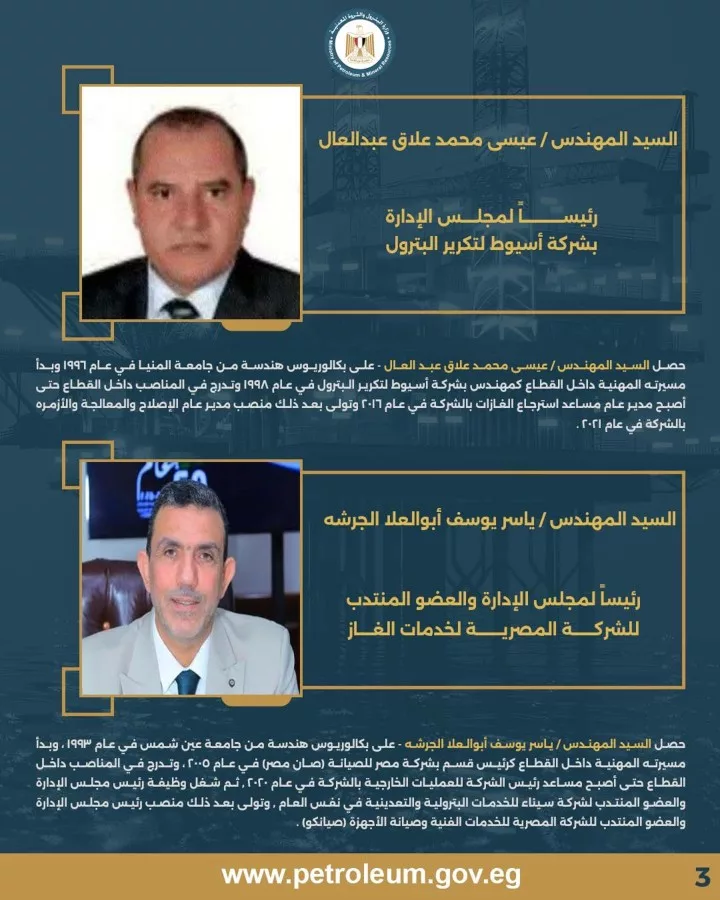 وزير البترول يصدر حركة تكليفات موسعة شملت موقعاً قيادياً بديوان عام الوزارة ورؤساء لمجموعة من الشركات