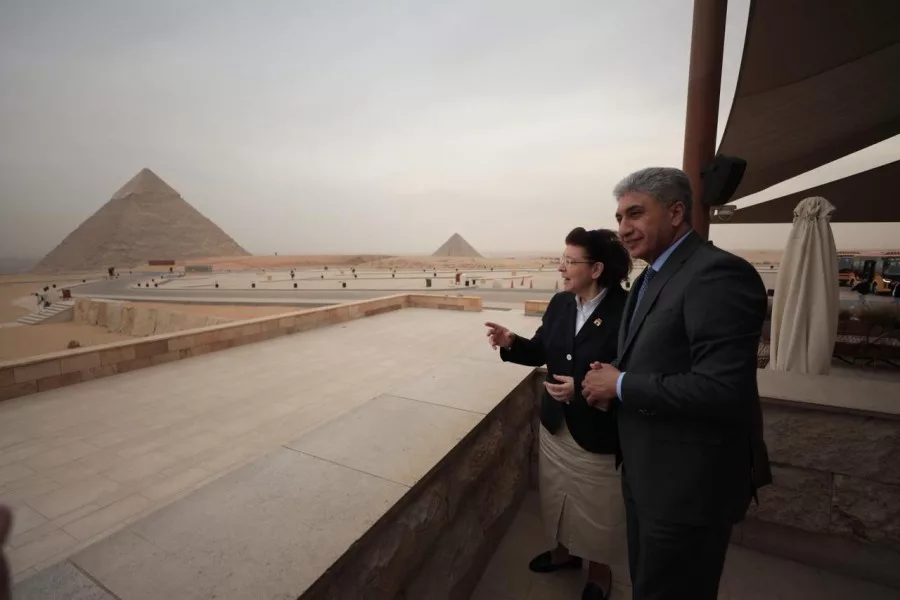 وعقب ذلك، قامت الدكتورة لينا مندوني وزيرة الثقافة لجمهورية اليونان والوفد المرافق لها بجولة بالمتحف المصري الكبير، زاروا خلالها الدرج العظيم والقاعات الرئيسية وقاعات توت عنخ آمون.
