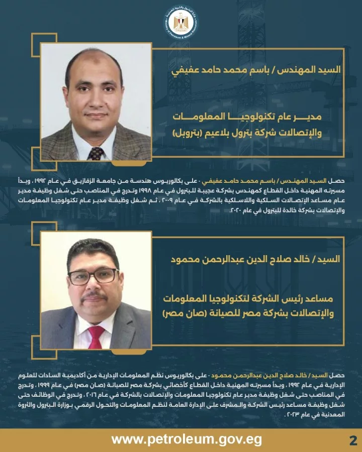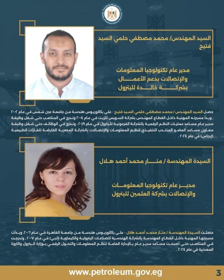 وزير البترول يصدر حركة مديرى نظم و تكنولوجيا المعلومات بديوان عام الوزارة وعدد من شركات القطاع