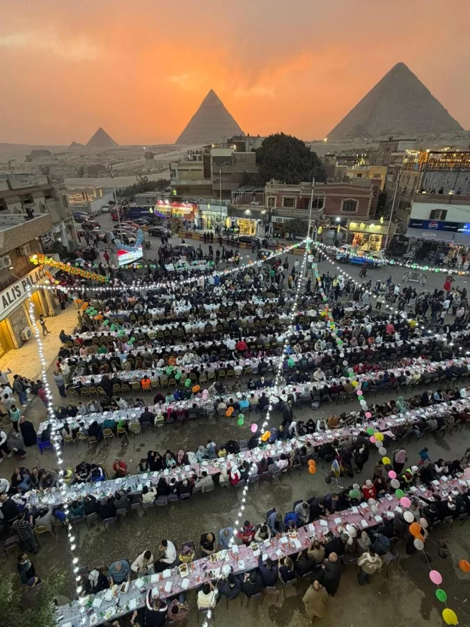في مشهد يعكس روح مصر الأصيلة، نظّم أهالي منطقة نزلة السمان إفطارًا جماعيًا رمضانيًا امتزجت خلاله البساطة بالبهجة، والحفاوة الشعبية بالترحاب الدولي، حيث شهد الحدث مشاركة لافتة من السائحين الأجانب الذين حرصوا على التواجد ومشاركة الأهالي طقوس الشهر الكريم.