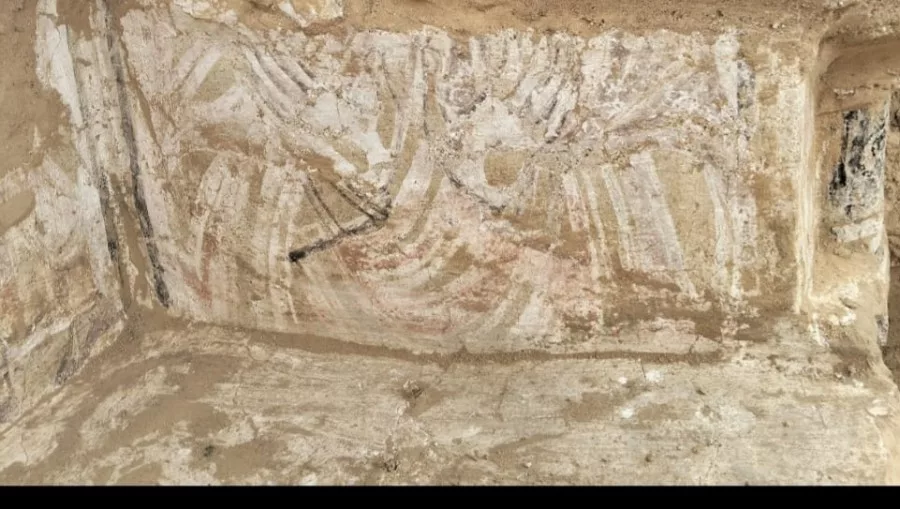 كما تم الكشف عن جدارية تُصوّر غزالتين تحيط بهما زخارف نباتية، يتوسطهما شكل دائري مزدوج يحتوي على زخرفة نباتية داخلية، في نموذج فني يعكس ثراء التعبير الرمزي في الفن القبطي المبكر.