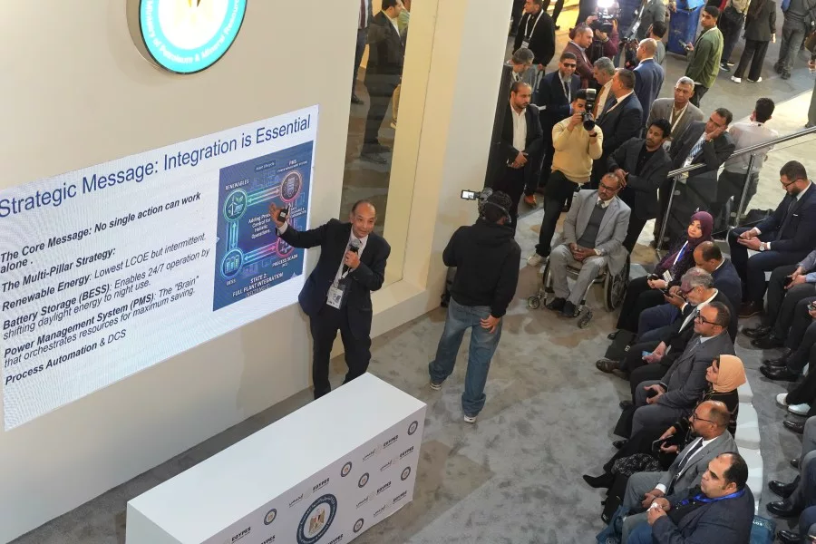 قدم العروض المهندس أحمد عبدالجليل وكلا من م. داليا عاطف وم. هند محمد محمود تحت شعار “استراتيجية كفاءة الإنتاج”، موضحين ما تحقق من تقليل تكلفة حقيقية وتخفيف الضغط على العملة الصعبة وتأمين سلاسل الإمداد ضد التقلبات الجيوسياسية العالمية وأن هذه الرؤية ترتكز على الإدارة الذكية للأصول، مرونة سلاسل الإمداد، العمليات المستدامة، وكفاءة الطاقة