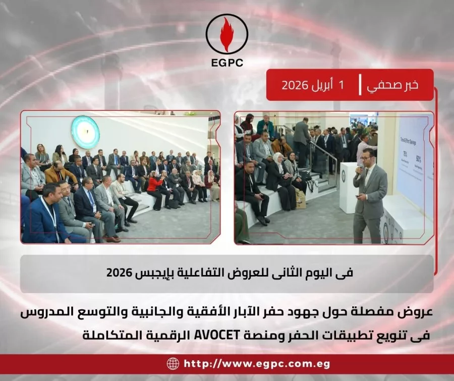 فى اليوم الثانى للعروض التفاعلية بإيجبس 2026… عروض مفصلة حول جهود حفر الآبار الأفقية والجانبية والتوسع المدروس فى تنويع تطبيقات الحفر ومنصة AVOCET الرقمية المتكاملة