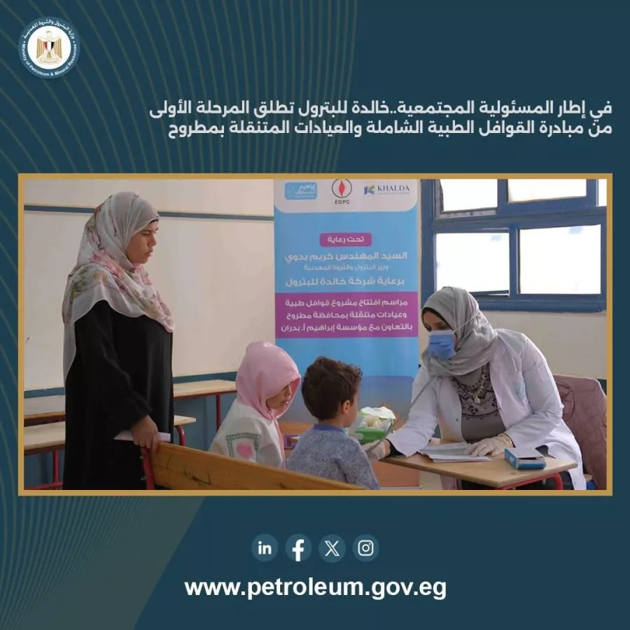 في إطار التزام قطاع البترول المصري بدوره التنموي والمجتمعي، وتعزيزًا لمساهمته في تنفيذ مستهدفات الدولة لتحقيق التنمية المستدامة وفق رؤية مصر 2030، أطلقت شركة خالدة للبترول، بالتعاون مع مؤسسة إبراهيم بدران للأعمال الخيرية، المرحلة الأولى من مبادرة “القوافل الطبية الشاملة والعيادات المتنقلة” بمحافظة مطروح .