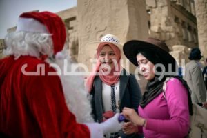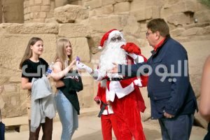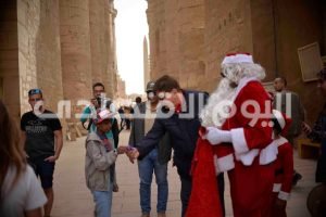 “بابا نويل” يوزع الهدايا الفرعونية والورود على السائحين بمعبد الكرنك احتفالاً بالكريسماس