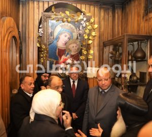 وقام الأنبا يوليوس بإهداء كل من الدكتور خالد العنانى واللواء محمود شعراوى ومحافظ القاهرة نسخة من أيقونة العائلة المقدسة.