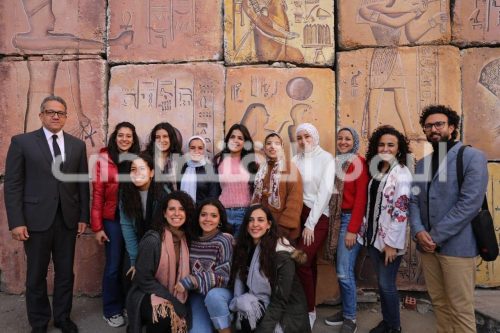 تفقد د.خالد العنانى وزير السياحة والآثار و د.خالد عبد الغفار وزير التعليم العالى والبحث العلمى ود.ماجد نجم رئيس جامعة حلوان صباح اليوم الأربعاء ١١ مارس أعمال التجميل الفنى لجداريات طريق موكب نقل المومياوات الملكية من المتحف المصرى بالتحرير إلى المتحف القومى للحضارة المصرية بالفسطاط، والتي قام بتنفيذها طلاب جامعة حلوان بإشراف عدد من أعضاء هيئة التدريس بالجامعة بامتداد الموكب المخصص لنقل المومياوات الملكية، الذى يمتد من مقرها الحالى إلى مقرها الجديد.