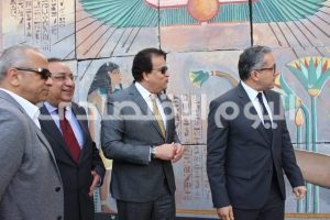 وزيرا السياحة والآثار ،والتعليم العالي والبحث العلمي، ورئيس جامعة حلوان يتفقدون التجميل الفنى لجداريات طريق عبور موكب نقل المومياوات الملكية
