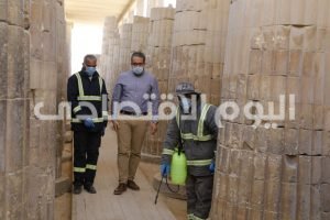 جدير بالذكر ان اعمال التعقيم في منطقة سقارة الأثرية مستمرة منذ إغلاقها وتتضمن تعقيم مركز الزوار واجهزة X-Ray ، وشباك التذاكر الخاص بالمنطقة الأثرية، ودورات المياة، ومدخل المنطقة، والطريق المؤدية لها، بالاضافة الي تعقيم الممشي الخشبي أمام الهرم والمسطحات التي من الممكن ان يتكأ عليها الجمهور وأماكن جلوس الزائرين وغيرها من الأماكن الملامسة للإنسان.