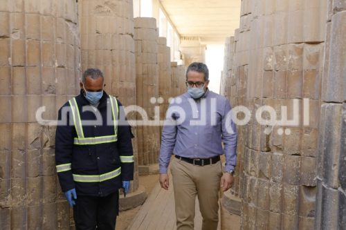 العناني يتابع أعمال التعقيم والتطهير بمنطقة آثار سقارة ويتفقد أعمال الحفائر الآثرية
