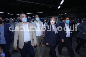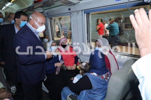 ثم تفقد الوزير محطة الشهداء التبادلية للخطين الأول والثاني لمترو الأنفاق للإطمئنان على انتظام حركة قطارات المترو بالتزامن مع عودة تشغيل المترو من الساعة السادسة صباح اليوم حيث تفقد الوزير شبابيك التذاكر وشاهدالتزام المواطنين بالوقوف وفقا لمسافات التباعد التي نفذتها شركة المترو أمام شبابيك التذاكر حفاظا على سلامة وصحة الركاب وكذلك التزام العاملين من المتعاملين مع الجمهور والقائمين بالتطهير والتعقيم بارتداء الكمامات وباستخدام صرافي التذاكر الكحول المطهر بشكل مستمر، ووجه الوزير قيادات الشركة المصرية لإدارة وتشغيل المترو باستمرار بث رسائل اذاعية في المحطات للتوعية من الفيروس والحرص على ارتداء الكمامات خلال استقلال المترو بالاضافة الى استمرار أعمال التطهير والتعقيم المستمر والدوري لكافة المحطات والقطارات و التنسيق المستمر مع شرطة النقل والمواصلات لمتابعة تنفيذ قرار رئيس مجلس الوزراء بشأن الزام المواطنين بارتداء الكمامات في وسائل النقل الجماعي ومنها مترو الأنفاق خاصة وأنه تم توفير كمامات وقائية للبيع بمكاتب صرف التذاكر وذلك حفاظا على سلامة وصحة الركاب والدفع بقطارات إضافية وتقليل زمن التقاطر من 4دقائق الى3 دقائق في حالة وجود أي كثافات من الركاب اواي ازدحام بالمحطات مع التواجد المستمر لقيادات شركة المترو في مختلف المحطات لمتابعة كافة الإجراءات المشار إليها.