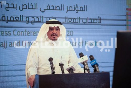 من جانبه أكد وزير الصحة الدكتور توفيق الربيعة أن الله وهب هذه البلاد نعمة وجود الحرمين الشريفين ، وما تحمله حكومة خادم الحرمين الشريفين من أمانة للمحافظة على أمن وسلامة قاصدي بيت الله الحرام جعل قرار حج هذا العام بأعداد محدودة أمرًا لا بد منه انطلاقا من الواجب الشرعي والإنساني ، مبينًا أن الجميع يعلم أن فيروس كورونا الذي ابتليت به البشرية في جميع أنحاء العالم لا زال يسجل أرقامًا مرتفعة في العديد من دول العالم، حيث وصل مجموع الأشخاص المسجل إصابتهم بهذا الفيروس إلى ما يقارب 8 ملايين شخص في أكثر من 188 دولة.