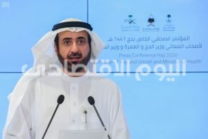 وقال خلال المؤتمر الصحفي المشترك مع وزير الصحة الدكتور توفيق بن عبدالعزيز الربيعة ، الذي عقد اليوم عبر تقنية الاتصال المرئي : تشرفت المملكة العربية السعودية باستضافة أكثر من 150 مليون حاج ومعتمر خلال العشر السنوات الماضية، وجميعنا يدرك ما يشهده العالم من تفشٍّ لفيروس كورونا المستجد كوفيد 19 بأكثر من 180 دولة على العالم، وقد أوضحت وزارة الصحة في المملكة العربية السعودية أن أخطار هذه الجائحة لاتزال مستمرة نظراً لعدم توفر اللقاح والعلاج للمصابين بالفيروس حتى الآن.