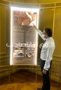 وقد رافقه خلال الجولة الدكتور مصطفى وزيري الأمين العام للمجلس الأعلى للآثار ، والدكتور علي عمر رئيس اللجنة العليا للعرض المتحفي، والاستاذة ايمان زيدان مساعد الوزير للاستثمار وتنمية الموارد المالية، والاستاذ أحمد عبيد مساعد الوزير لشئون قطاع مكتب الوزير، والعميد هشام سمير مساعد الوزير للشئون الهندسية، والاستاذ مؤمن عثمان رئيس قطاع المتاحف.