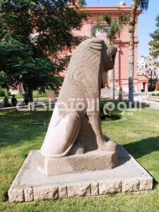 أما بالنسبة لتمثال الأسد الموجود بواجهة المتحف فهو بحالته التي كان عليها قبل نقله من حديقة المتحف المصري بالتحرير حيث كان مرمما ومعروضا بها.