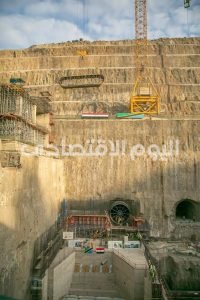 وأضاف أن المشروع قد شهد أعمال تفجيرات للصخور وحفر بها، بلغت كميتها 2.5 مليون متر مكعب، وتم صب 50 ألف متر مكعب خرسانة لمبنى الباور هاوس.