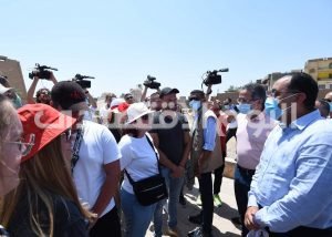 وصعد رئيس الوزراء إلى أعلى نقطة في معبد الكرنك حيث رأس الأعمدة التي يتم ترميمها، وأجرى حواراً مع عدد من شباب وشابات يتولون أعمال الترميم أعلى السقالات، وأكد لهم أنه عرض على الرئيس عبد الفتاح السيسي أمس صورهم وهم يعملون فوق السقالات في معبد الكرنك، مشيدا بما يبذلونه من جهود، ونقل لهم تحيات الرئيس وتقديره لما يقومون به من جهد رائع يبعث على الفخر، لافتأً إلى أن هذه الآثار عمرها آلاف السنين، ولم يفكر أحد في القيام بما نقوم به الآن لإعادة صورتها الحضارية.