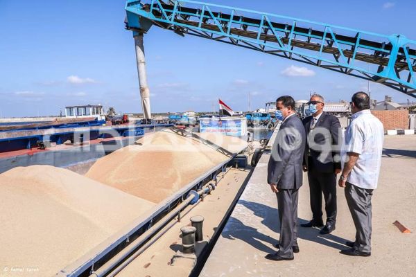 إستمراراً لتفعيل منظومة النقل النهري … ميناء دمياط ينقل شحنة من القمح إلى صوامع إمبابه عبر نهر النيل