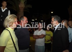 كما التقي وزير السياحة و الآثار، خلال جولته بالممشي السياحي بمجموعة من السائحين من اوكرانيا و روسيا و فرنسا والمانيا و بيلاروسيا والذين حرصوا علي التحدث و التقاط الصور معه وخاصة الاطفال.