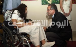 وعقب تفقد معرض الأعمال الفنية، بدأت احتفالية كبرى بمشاركة فرقة أوركسترا وزارة الشباب والرياضة بقياده المايسترو مازن دراز.