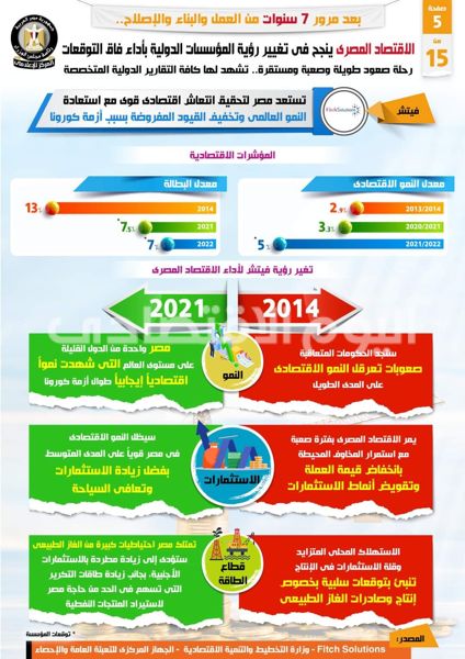 بالإنفوجراف… بعد مرور 7 سنوات من العمل والبناء والإصلاح : الاقتصاد المصري ينجح في تغيير رؤية المؤسسات الدولية بأداء فاق التوقعات
