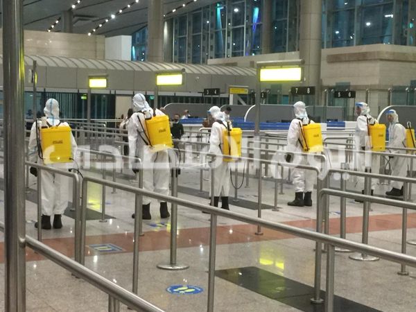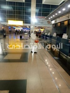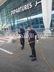 وأضاف سيادته أن الوزارة تحرص بشكل مستمر على تطبيق كافة الإجراءات الإحترازية والوقائية، وتتابع عن كثب ما تصدره منظمات الصحة والطيران من تعليمات دولية وتقوم بتعميمها وكذا التفتيش على مختلف المطارات المصرية من خلال لجان التفتيش التى تتم على المطارات وجميع مواقع العمل داخل قطاع الطيران المدنى ، وذلك بالتنسيق مع مختلف الأجهزة التنفيذية وطبقًا لقواعد وزارة الصحة ومنظمة الصحة العالمية بما يكفل تحقيق أعلى مستويات الدقةوالإلتزام لمعايير السلامةوالجودة الدولية. للحد من انتشار فيروس كورونا و تشمل اعمال التعقيم مداخل ومخارج صالات السفر والوصول وكاونترات الجوازات وسيور الحقائب وعربات نقل الأمتعة وأماكن الإنتظار الخاصة بالركاب والمستقبلين والمودعين ودورات المياه.