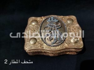 يعرض المتحف علبة مصنوعة من الذهب، بغطاء مستدير الشكل من العقيق الزيتي، ويعلوها صورة للملكة فريدة وتاج وهلال من البلاتين مرصعين بالماس.