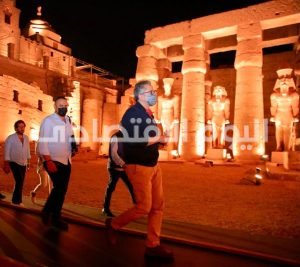 واستهل وزير السياحة و الاثار جولته بتفقد مسارات الزيارة بمعبد الاقصر،