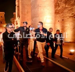بعد الانتهاء مساء أمس من ورشة العمل الموسعة مع مسؤلي و ممثلي الشركة المنفذة لاحتفالية الأقصر للوقوف علي الموقف التنفيذي للعرض الفني للاحتفالية المقرر إقامتها خلال الأسابيع القليلة القادمة للترويج السياحي لمحافظة الأقصر وإبراز مقوماتها السياحية والأثرية ومظاهر الجمال بها، توجه الدكتور خالد العناني وزير السياحة والآثار، الى معبد الأقصر و طريق المواكب المعروف بإسم طريق الكباش لتفقد آخر مستجدات أعمال تطوير وتجهيز المنطقة الأثرية، والموقف التنفيذي لرفع كفاءة الخدمات السياحية المقدمة للزائرين بهما، و ما تم من تجهيزات بالموقع استعدادا لاحتفالية الأقصر.