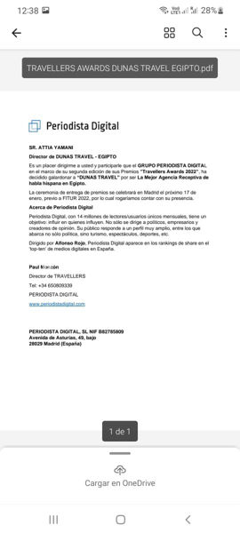 جاء هذا بعد أن تلقت الشـركة خطاب رسمي من اللجنة المنظمة حصل ” اليوم الاقتصادي” علي صورة منه ، يدعوا الشـركة للاشتراك في إحتفالية تراڨيلر أووردس التي تنظمها جريدة بريوديستا ديجيتال، والتي يتابعها 14 مليون قارئ ،في مدريد يوم 17 يناير القادم علي هامش معرض مدريد “فيتور 2022” .