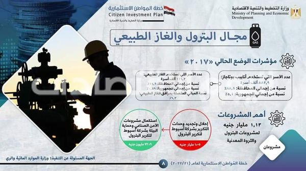 ولفت التقرير إلى أهم مشروعات قطاع البترول والغاز الطبيعي بالمحافظة بخطة عام 21/2022 والتي يبلغ عددها 46 مشروعا متمثلة في إحلال وتجديد وحدات التكرير بشركة أسيوط لتكرير البترول بتكلفة 1,05 مليار جنيه، إلى جانب استكمال مشروعات الأمن الصناعي وحماية البيئة بشركة أسيوط لتكرير البترول بقيمة 72,9 مليون جنيه.