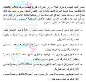 أصدر المهندس طارق الملا وزير البترول والثروة المعدنية، قرارات بحركة تنقلات وتكليفات للاستكشاف جديدة ، شملت كل من :