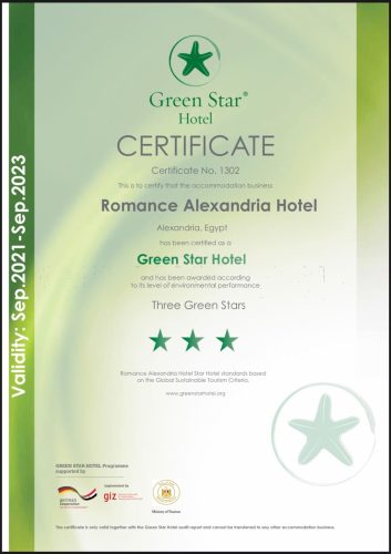 ويعتبر فندق رومانس الإسكندرية من أوائل الفنادق الحاصلة علي هذة الشهادة المعتمدة عالميًا في مصر ، باعتباره