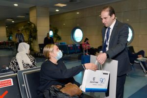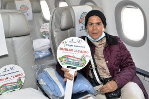 ومع هبوط طائرة مصرللطيران للمرة الأولى بمطار دبلن حرصت مصر للطيران على الترحيب بركاب رحلتها الأولى من القاهرة ومن دبلن من خلال توزيع الهدايا التذكارية عليهم.