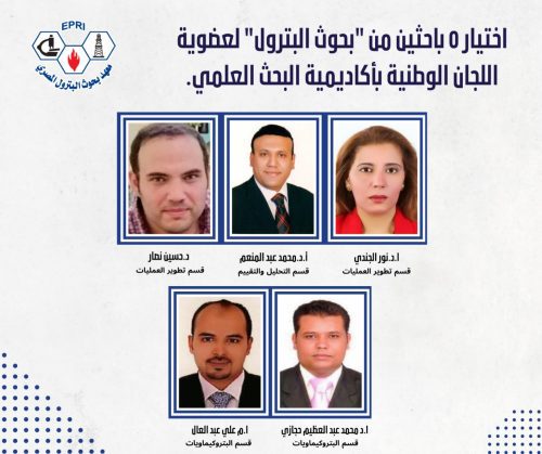اختيار ٥ باحثين من” بحوث البترول” لعضوية اللجان الوطنية بأكاديمية البحث العلمي