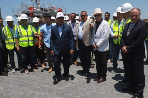 حيث بدأت الجولة بتفقد الوزير مشروع محطة تحيا مصر متعددة الأغراض لمتابعة تطور أعمال البنية الفوقية بالمحطة والاطلاع على آخر المستجدات، وحيث قام استشارى المشروع بعرض الموقف التنفيذي لأعمال المرافق ورصف الساحات والطرق والتي تبلغ مساحتها نصف مليون متر مربع، وكذلك الجدول الزمنى للأعمال، واستعراض الإجراءات الخاصة بتنفيذ الحماية الحجرية وحماية القاع من النحر للركن الشمالى الشرقى للرصيف كما قام استشاري المباني بعرض تفصيلي للموقف التنفيذي للمباني والمنشآت الخدمية والبوابات والورش الفنية حيث تم التأكيد على التزام الشركات المنفذة للمشروع باستكمال أعمال تنفيذ المباني الإدارية والخدمية تماشياً مع الجدول الزمنى للمشروع.